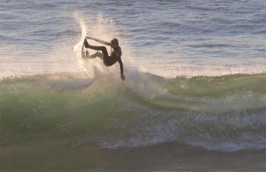 "Aye, you were right. I had a blast and something special happened on my last wave. A bunch of dolphins moved into the lineup just before dark. They were frolicking around, riding set waves, jumping through the wave faces, etc. I dropped in on my last wave and what do you know, right under my feet, below my board, I see, crystal-clear, a dolphin riding the wave...a great way to end a great session."