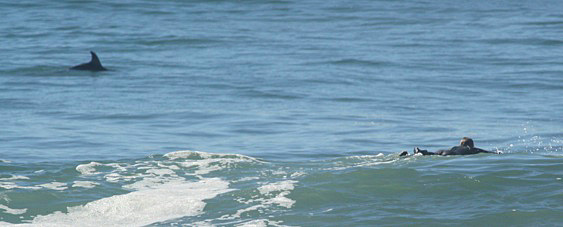 Once again, I marvelled at how fast bottlenose dolphins can move, how perfectly adapted to the sea they are, and how wonderful it is to be alive, enjoying the natural world, entering, if but for an hour or two, the wilderness of the sea. I shared the story a few days later at Seawind with George, a crusty regular there. He reminded me of an event that happened decades ago at Black's Beach, where a surfer, seeing a newborn dolphin close to him, paddled over and petted the thing, as if he were at Sea World. A second later, BAMM. Momma swam into him, just hard enough to break his back in six places. He had to be helicoptered off the beach. We both read about it in Surfer Mag back in the 1980's.