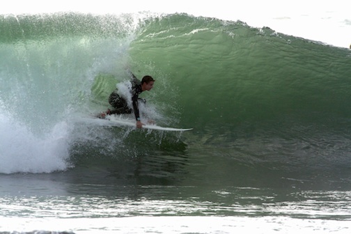 When I got home, I saw my son, Erik, had borrowed my 7'2" everyday board, which he uses as a gun. Hmmmm...He didn't bring it home. Shortly after this picture was taken, he pulled into a giant barrel and busted it. Is that a thick lip, or what?