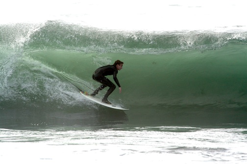 A friend took a snap of Erik surfing last February, another shot of him just before he broke my board. Definitely some winter juice...