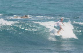 Erik and Nick took off with Bub without the old man (i.e., moi) to surf Shipwrecks, which they caught at a perfect six-foot. A barrelling, insane wave, according to Erik, who will have to give you his own firsthand report, since I was back at the condo surfing La Roca with ten others.