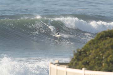 Another big day, Sunday, the 22nd. As I stood on the beach at Headkick, with my trusty 8'4" gun, one of my son's buddies, Kyle, dragged himself from the soup. "How was it?" "So scary..." But his mom, on the stairs, caught him riding a big one all the way in.